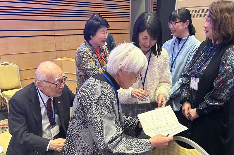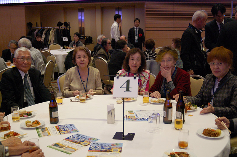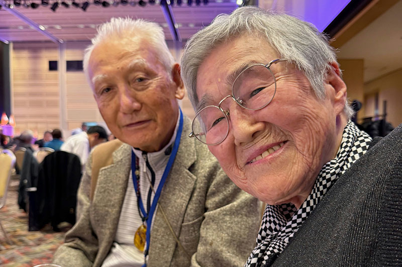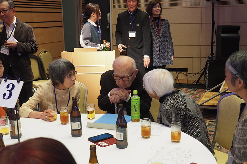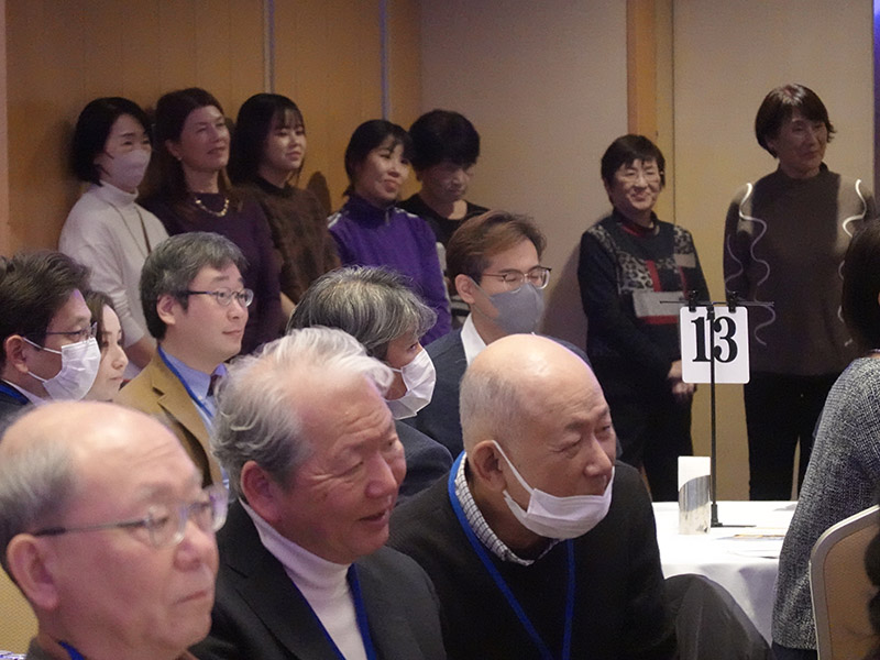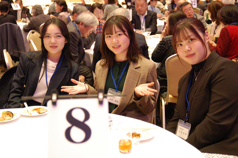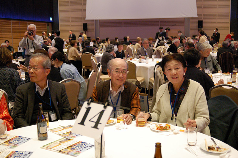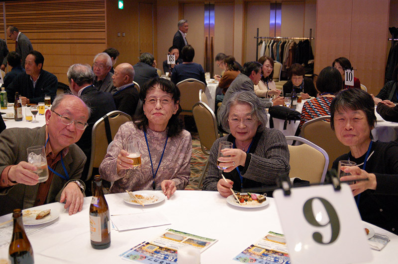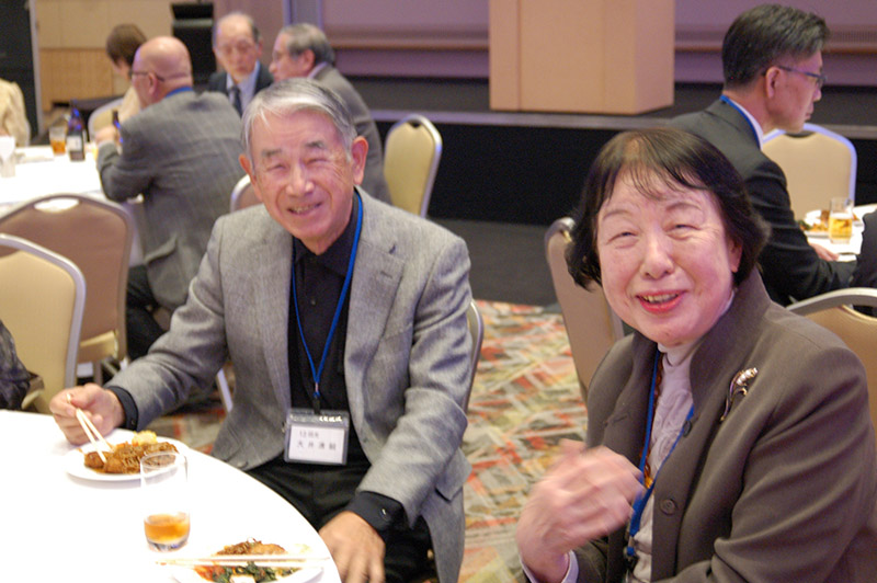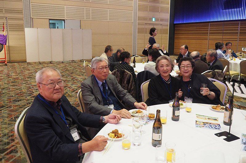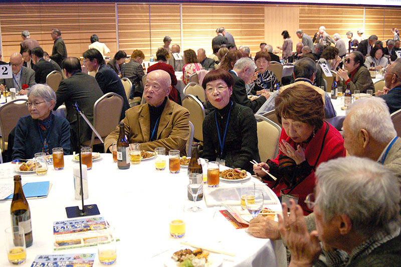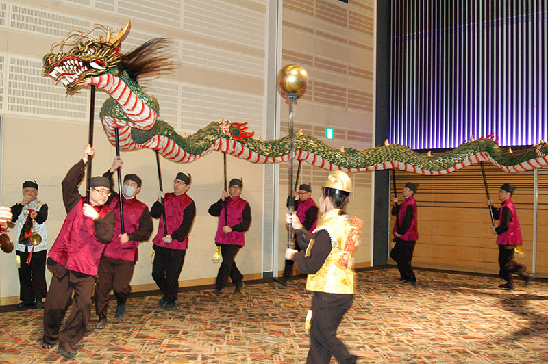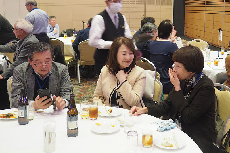 今回の目玉企画は、今年で2回目となる講演会です。2024年にノーベル平和賞を受賞された日本被団協 代表委員の田中煕巳さん(3回生)にご登場いただきました。会場のみなさんは、どんなお話をしてくださるのかと興味津々で田中さんの講演を熱心に聞きいっていました。講演会の後は、いつものように和やかで賑やかな歓談、そして、東風アンサンブルのコーラスや東龍倶楽部の龍踊りで盛大な総会となりました。今年も、長崎名産のご寄付、乾杯用東高校章入り特注グラスの提供を頂きました。厚く御礼を申し上げます。