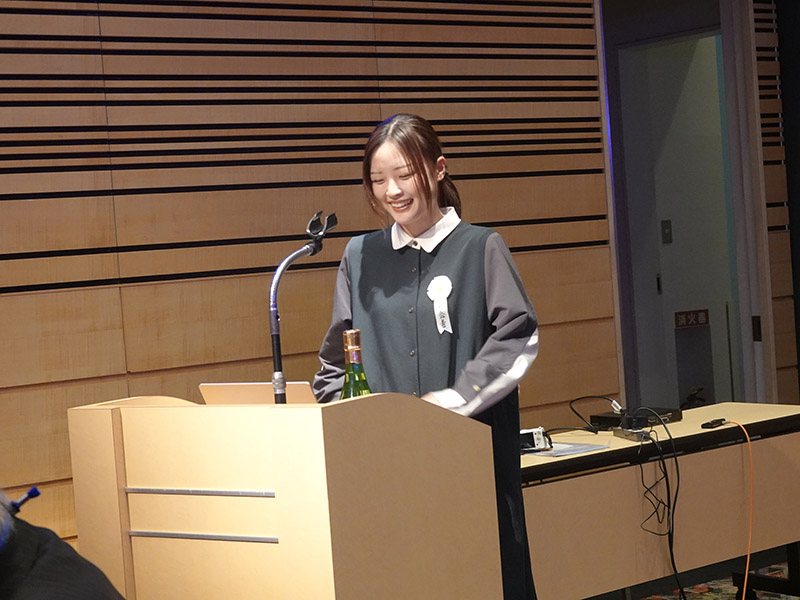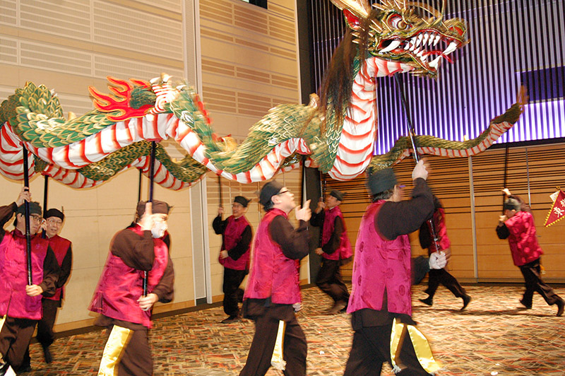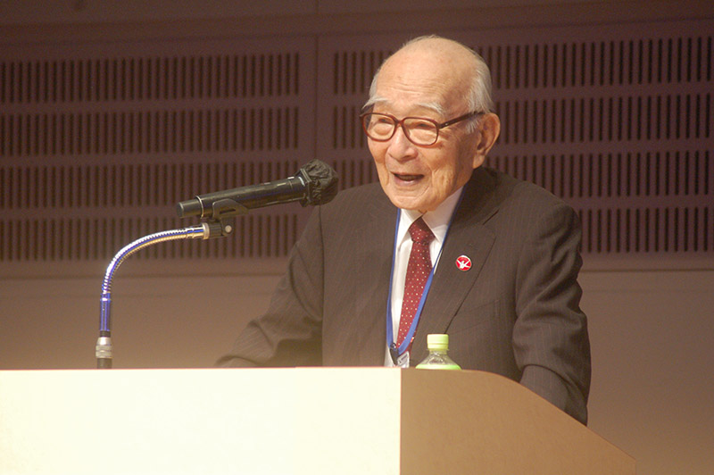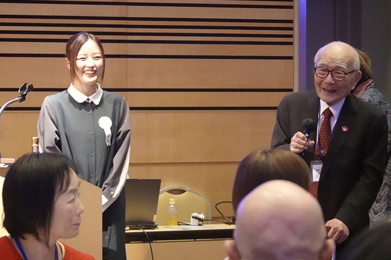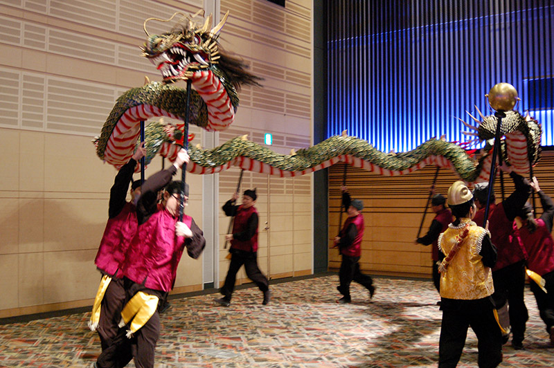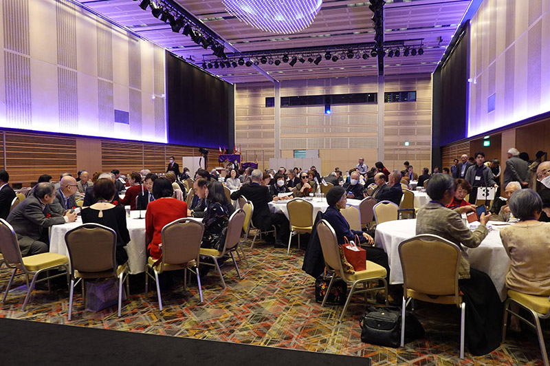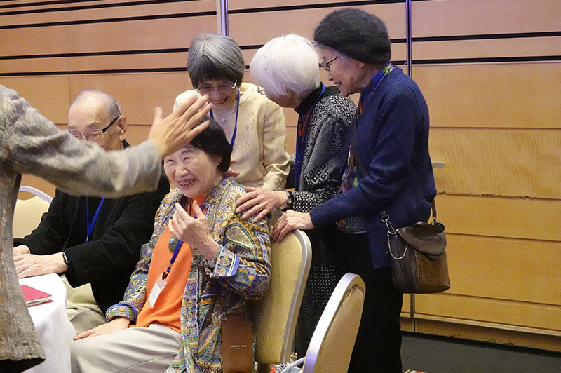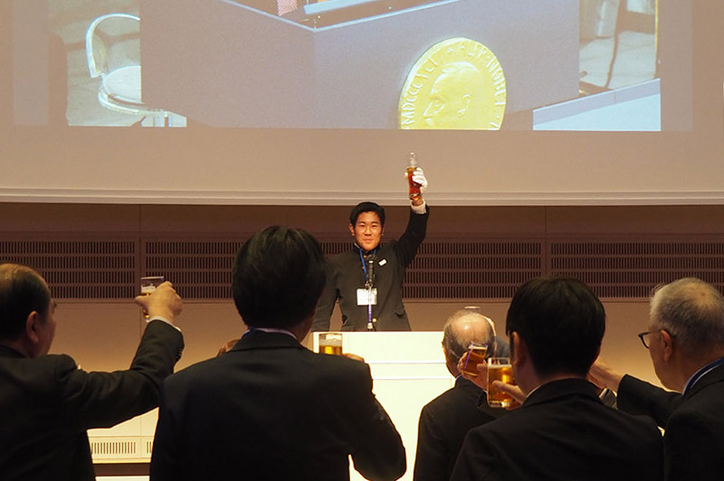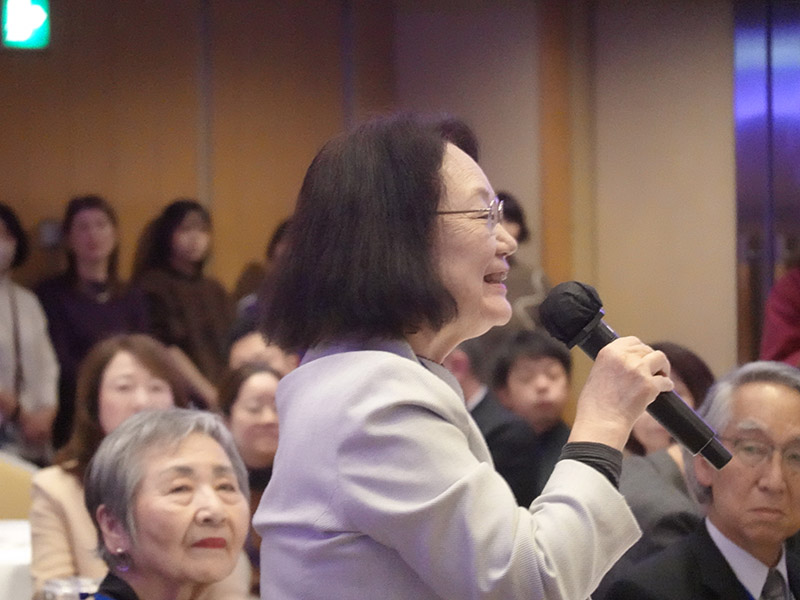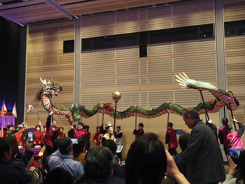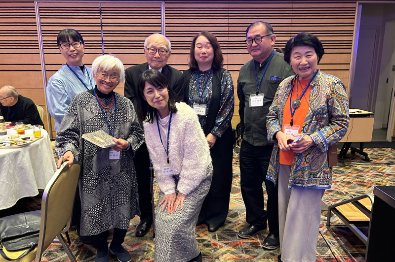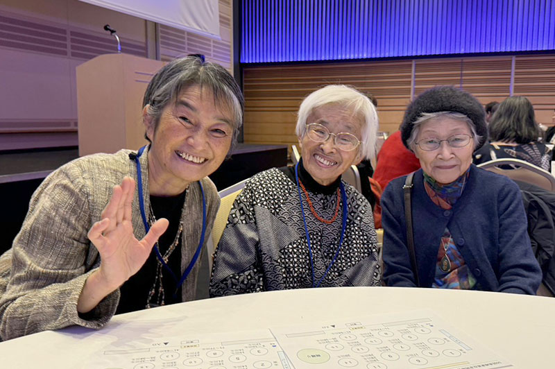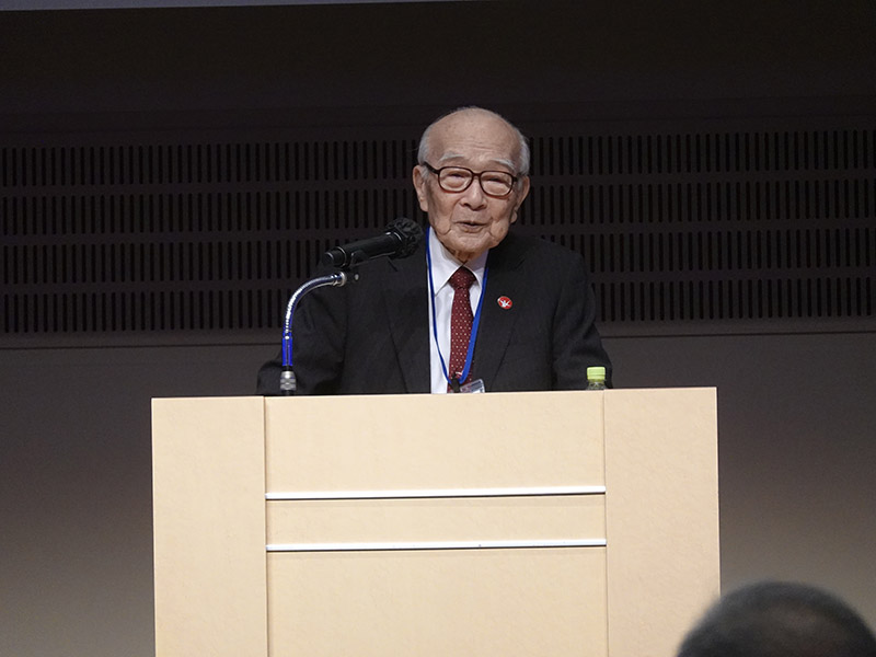 今回の目玉企画は、今年で2回目となる講演会です。2024年にノーベル平和賞を受賞された日本被団協 代表委員の田中煕巳さん(3回生)にご登場いただきました。会場のみなさんは、どんなお話をしてくださるのかと興味津々で田中さんの講演を熱心に聞きいっていました。講演会の後は、いつものように和やかで賑やかな歓談、そして、東風アンサンブルのコーラスや東龍倶楽部の龍踊りで盛大な総会となりました。今年も、長崎名産のご寄付、乾杯用東高校章入り特注グラスの提供を頂きました。厚く御礼を申し上げます。